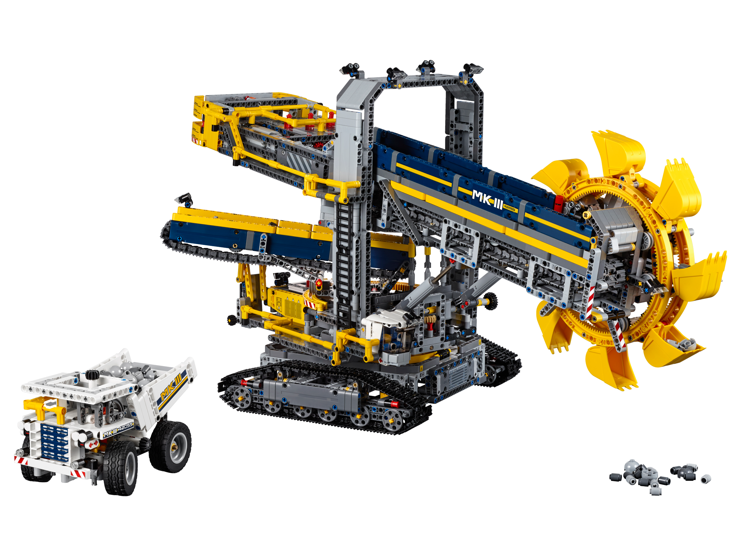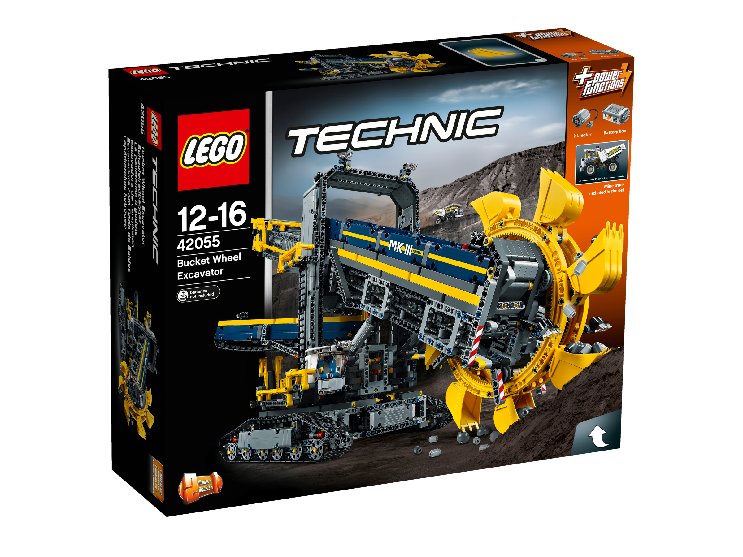 Enjoy building and operating this massive 2-in-1 Bucket Wheel Excavator, the largest LEGO® Technic set to date! This awesome, meticulously detailed reproduction of a real-life mining excavator comes with a cool dark-blue and yellow colour scheme and an array of authentic features and functions, including hand-railed walkways, huge tracks and a detailed cab. Switch on the included Power Functions motor and you can activate the conveyor belts, rotate the massive superstructure and maneuver the colossal machine into position. Then activate the boom to lower the gigantic, digging bucket wheel and convey the mined material to the waiting mine truck. When you feel like another building challenge, rebuild it into a Mobile Aggregate Processing Plant.